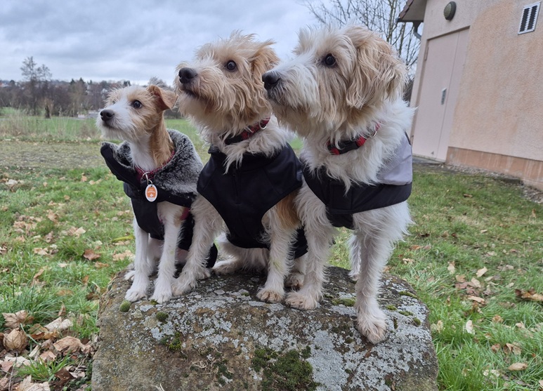 Mutter: Ayka vom Schlitzer Weinberg (F3 Hündin aus unserem A-Wurf), Vater: Duke vom Berliner Nordgraben (reinrassiger Kromfohrländer, rauhaarig)