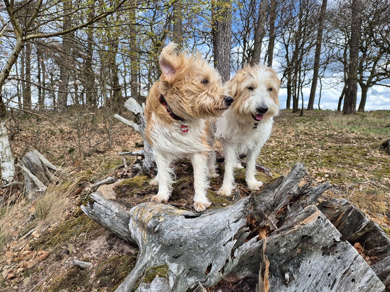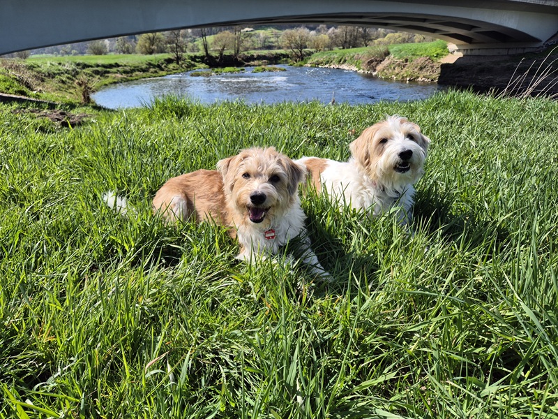Mutter: Ajula vom Solberknochen (F2 Hündin), Vater: Luffe vom Steenbrook (reinrassiger Kromfohrländer, rauhaarig)