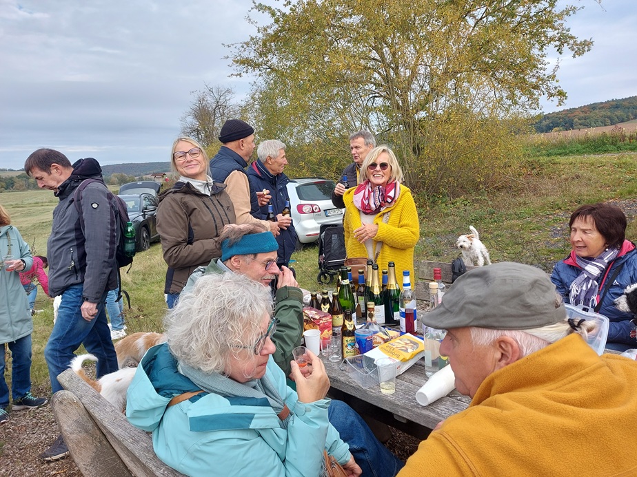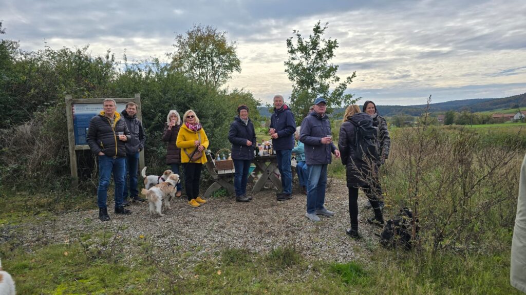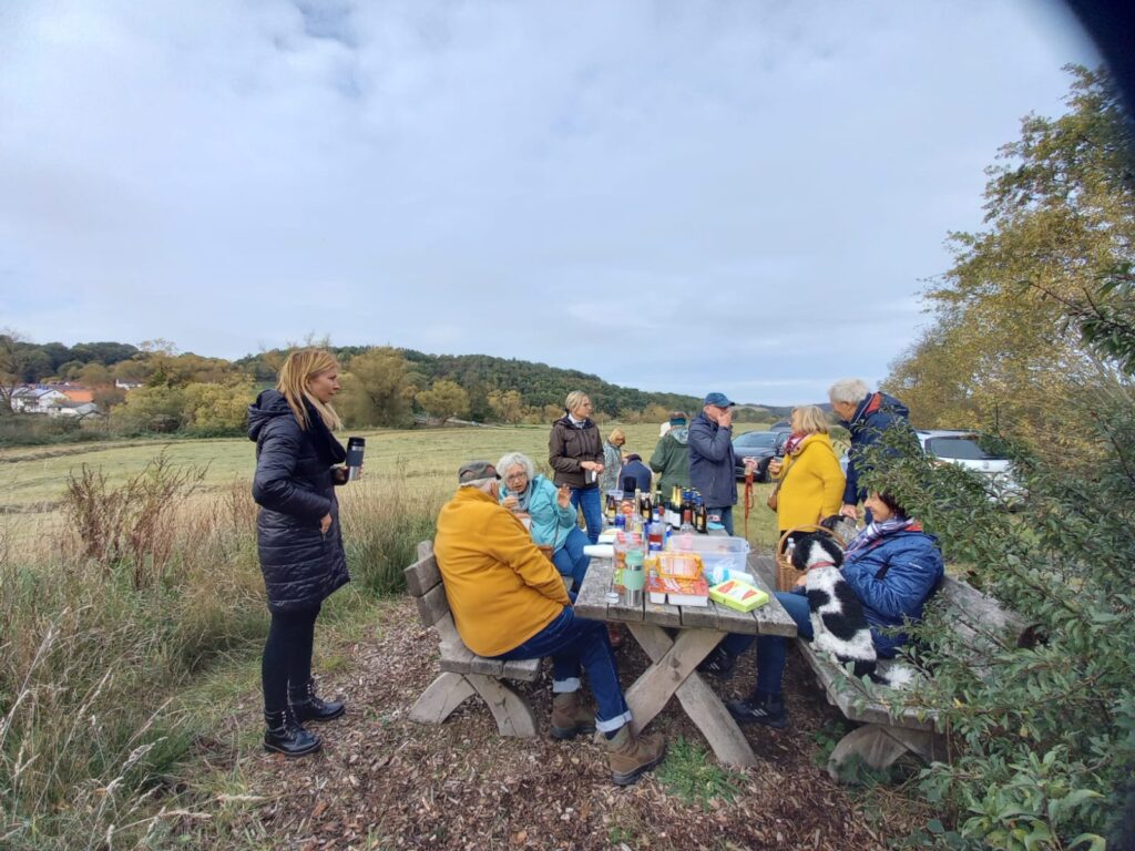 19.10.2025 Wir trafen uns in großer Runde am Landgasthof Porta in Schlitz-Pfordt. Unser Weg verlief entlang des Pfordter See’s und zurück entlang der Fulda. Am Altarm der Fulda (Renaturierungsgebiet) der Fulda in Üllershausen erwartete uns eine üppige Pausenverpflegung.