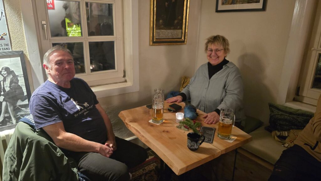 14.12.2025 Der letzte Spaziergang des Jahres 2025 führte uns durch’s Schlitzer Ziegeleiwäldchen und die großen Auwiesen entlang der Schlitz. Die traditionelle „Gipfelschnapspause“ fand dieses Mal am Schluss des Spaziergangs auf dem beschaulichen Schlitzer Weihnachtsmarkt unterhalb der größten Kerze der Welt statt. Zum Abschluss kehrten wir in Peets Coffee & Bar ein, wo wir sehr herzlich empfangen wurden.